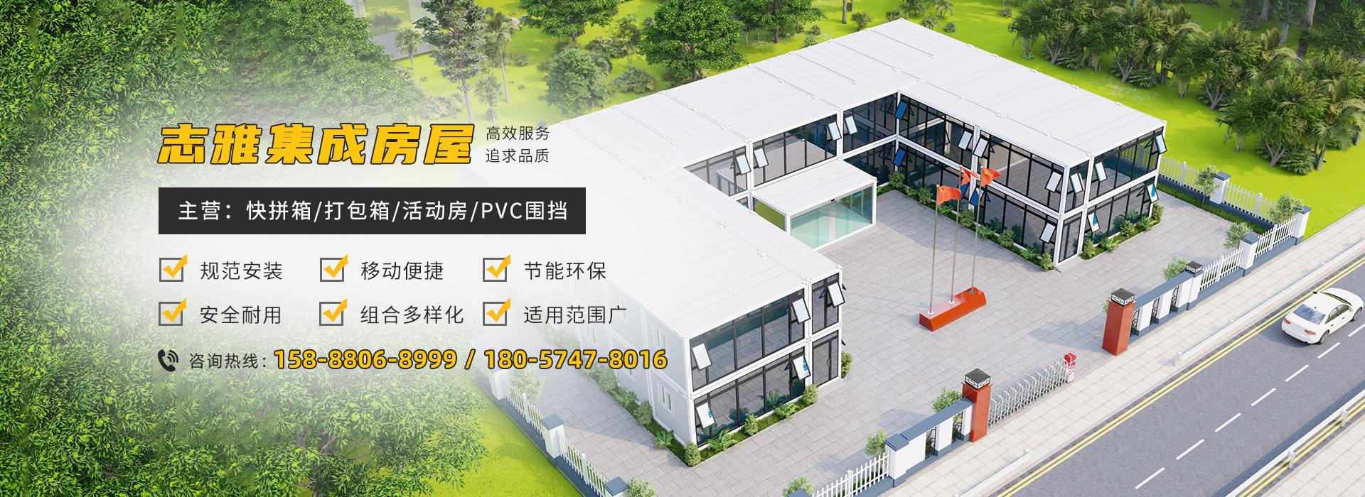 宁波志雅集成房屋有限公司是专注于工地临建的一家生产安装企业,主营:快拼箱、打包箱、活动房、PVC围挡,其他等产品专业生产加工的公司,公司拥有一整套规范的安装程序,设计灵活多样迅捷,能完整为广大客户设计、制作、安装各种系列活动房,集装箱活动房,吊装活动房,活动房出租,活动房租赁等活动房。拥有完整、科学的质量管理体系。坚持诚信、实力和产品质量获得业界的认可。